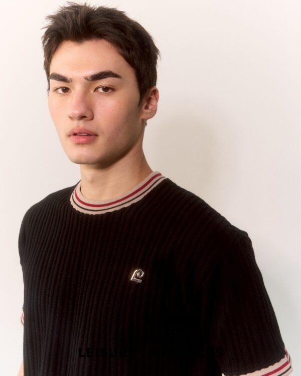 BLACK cable knit jaccard t-shirt