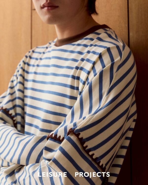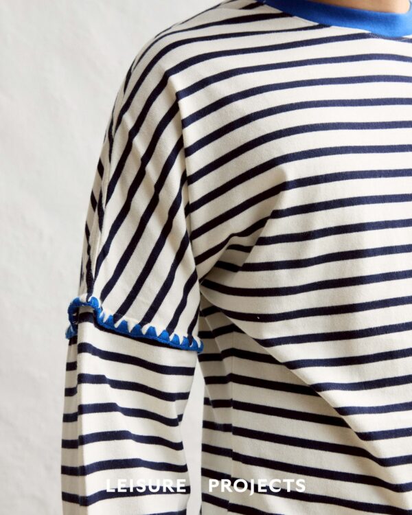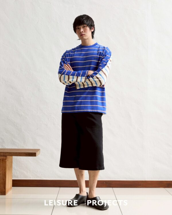 BLUE Multi-stripes patchwork long sleeves t-shirt