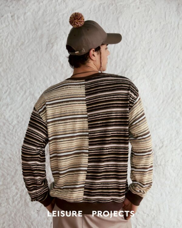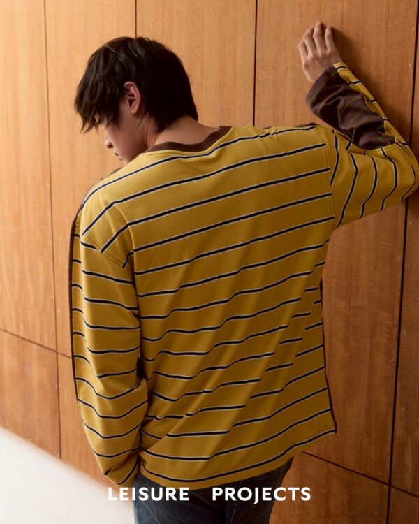 BROWN Multi-stripes patchwork long sleeves t-shirt