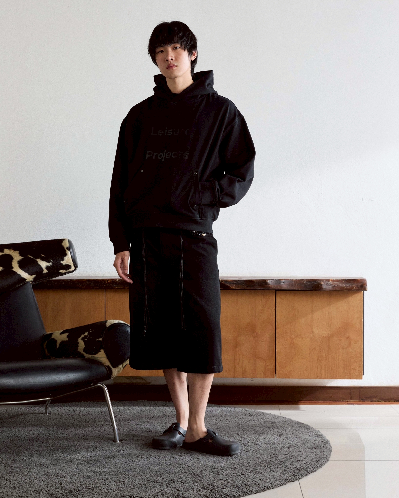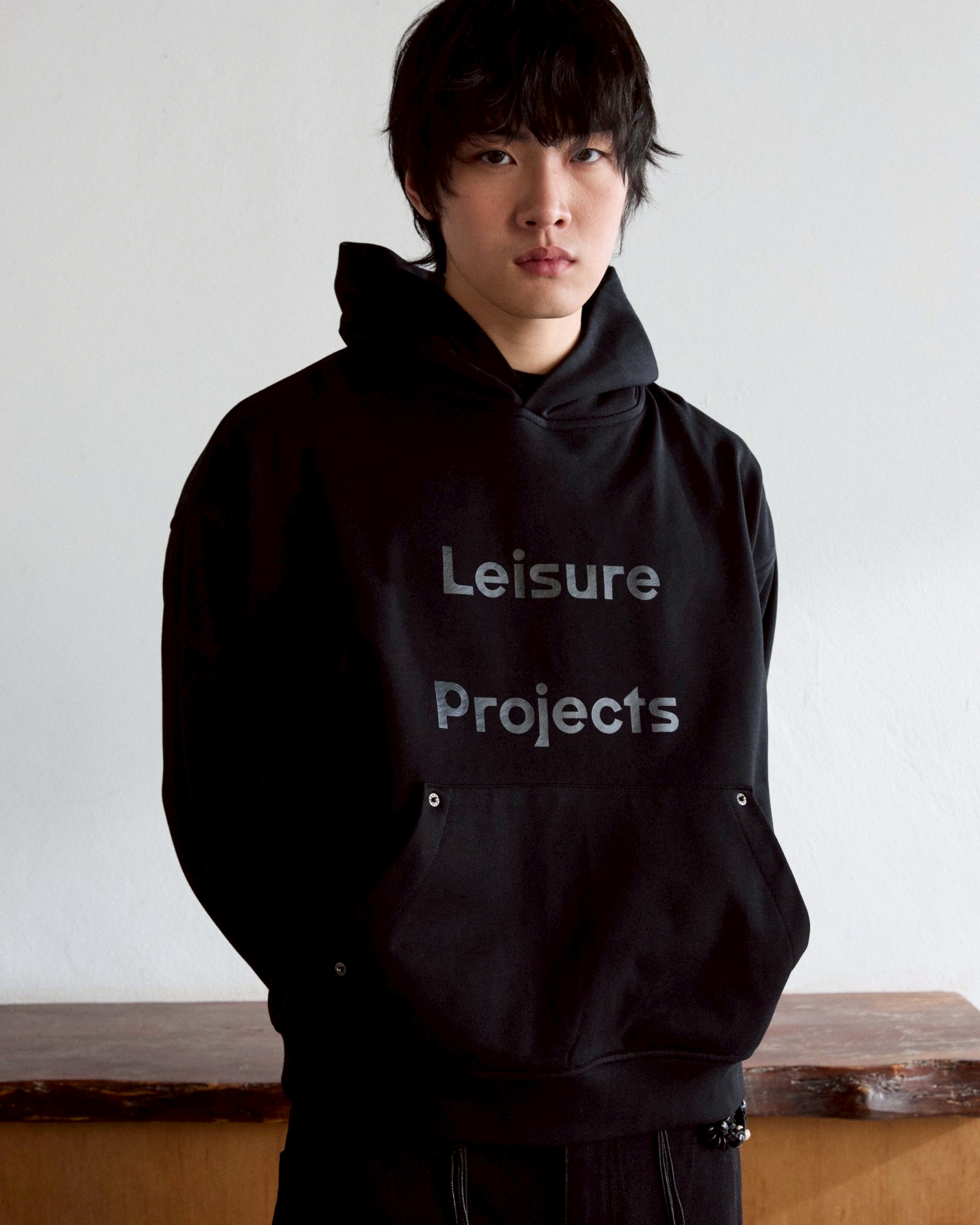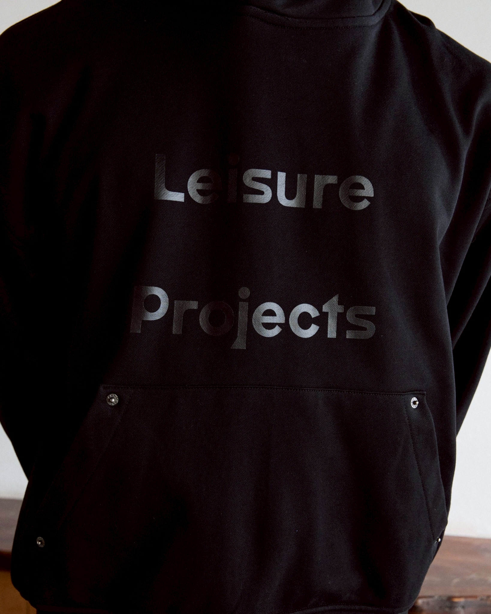 (LEISURE PROJECTS) Leisure logo hoodie 400 Grams French terry cotton hoddie with metal denim stud decorative detail.