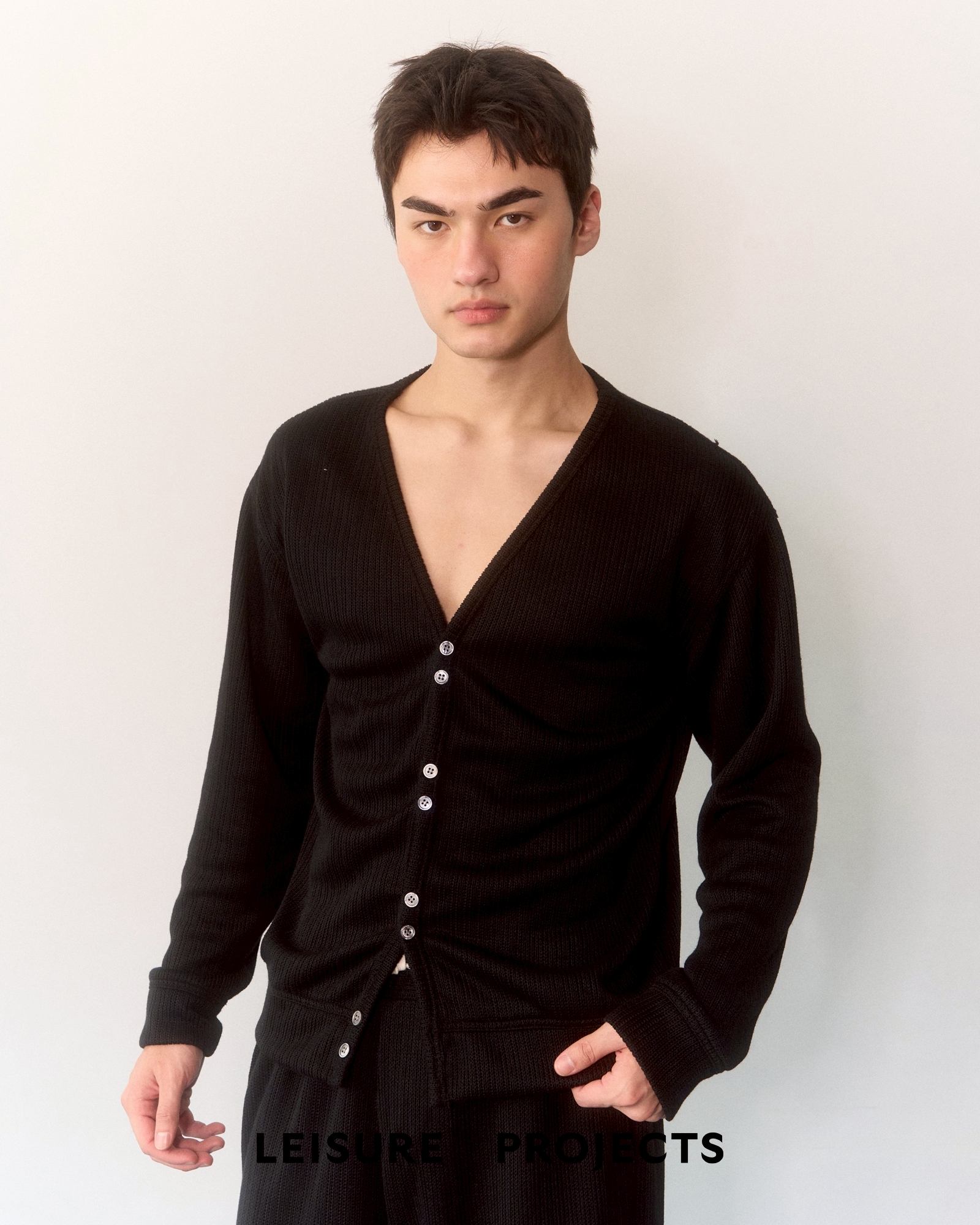 (Leisure Projects)LIGHT KNIT CARDIGAN Oversize Long sleeves Madras shirt SIZE: Freesize chest 42″ lenght 26.5″