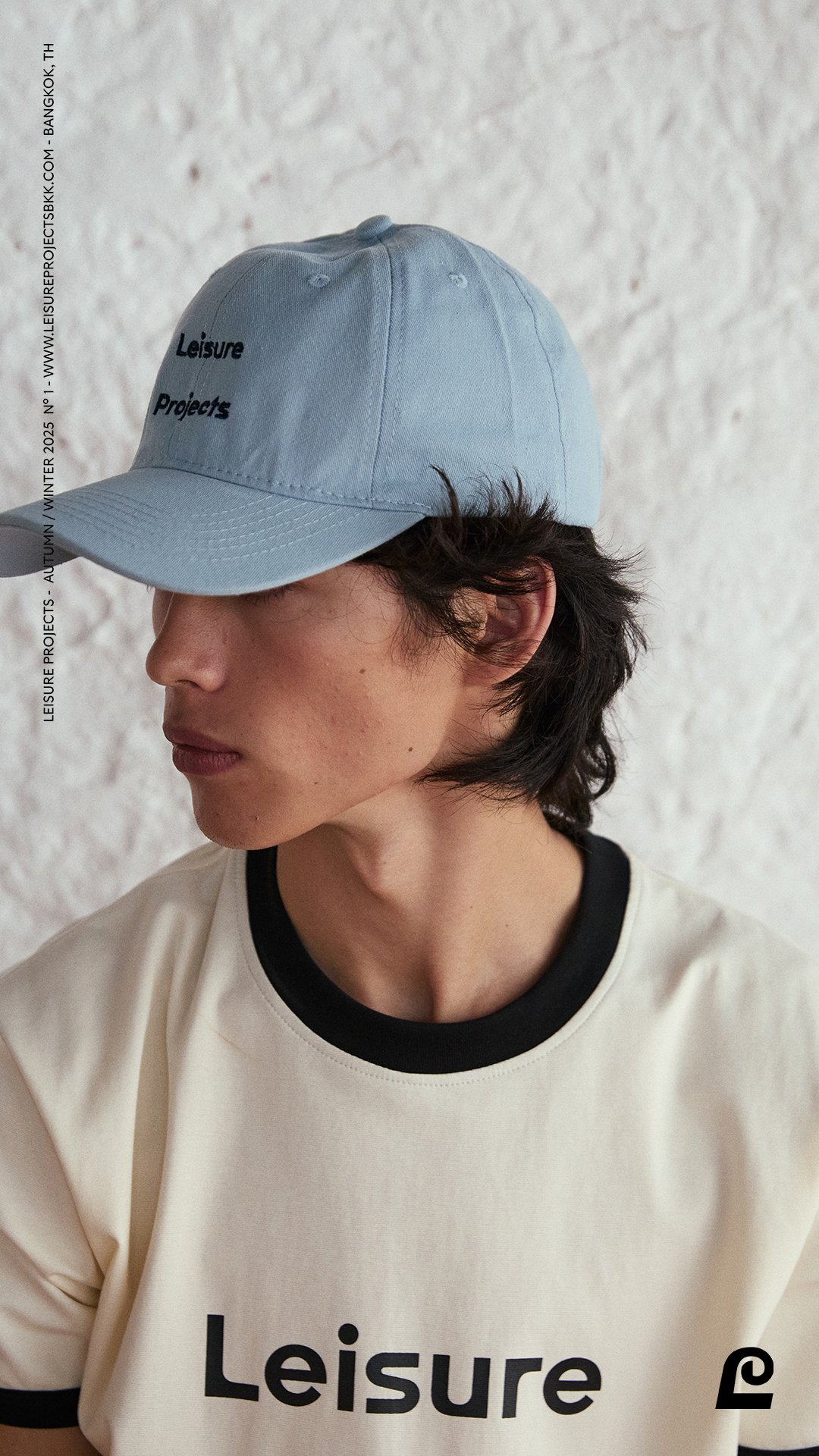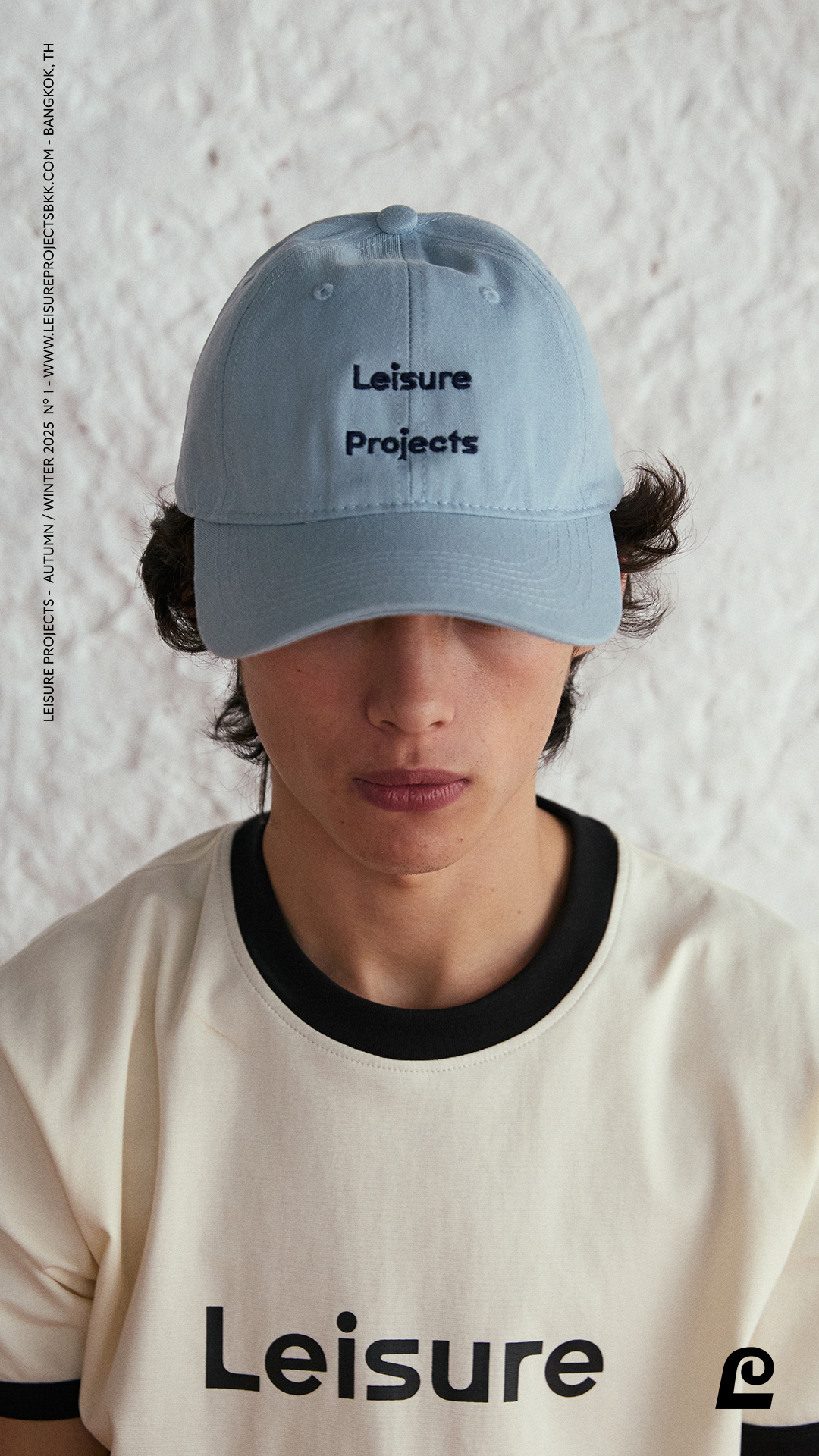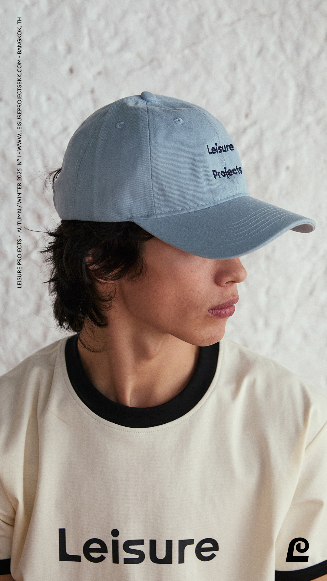 washed twill baseball cap with Leisure Projects logo embroideried detail.