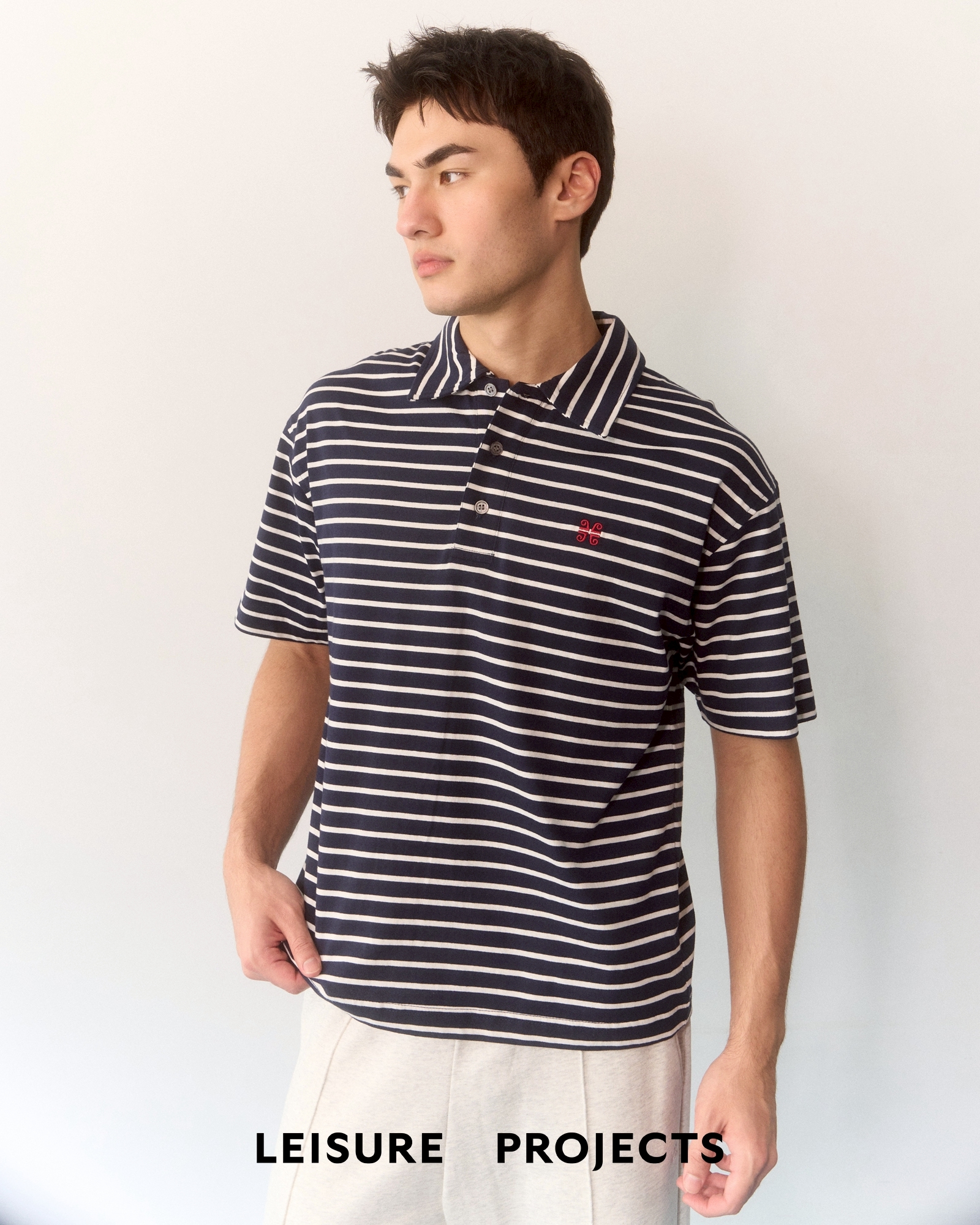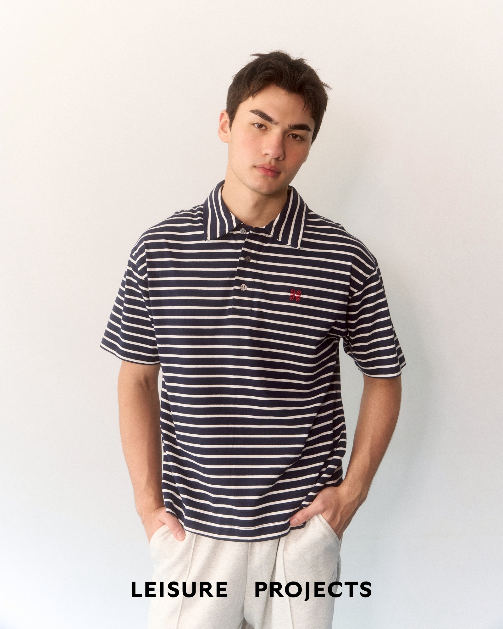 (LEISURE PROJECTS) LEISURE BASIC POLO oversize fit polo shirt with contrasted collar and LP MONOGRAM embroderied detail.