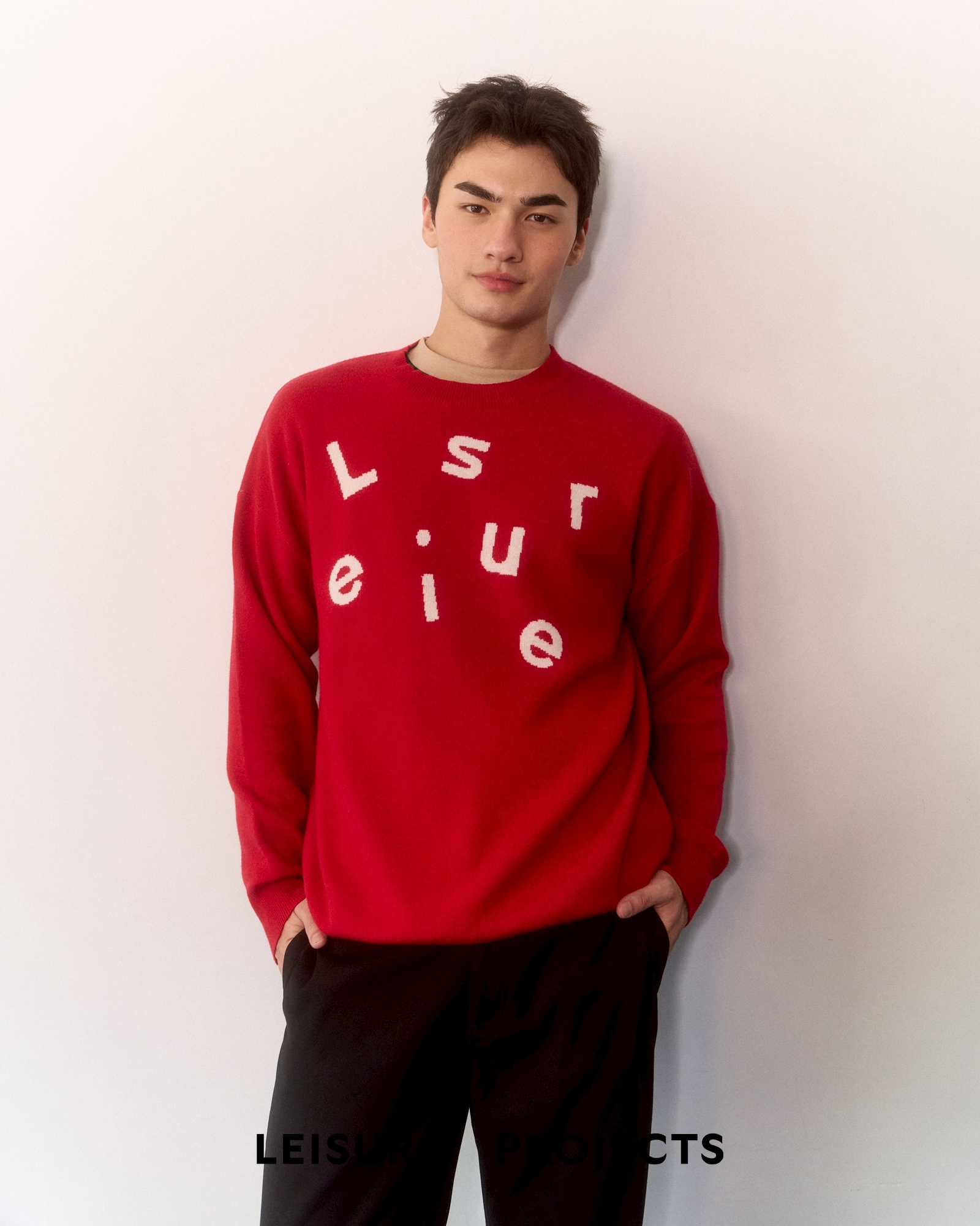 Knit oversize jumper with Leisure Projects’ Messy logo graphic on the chest