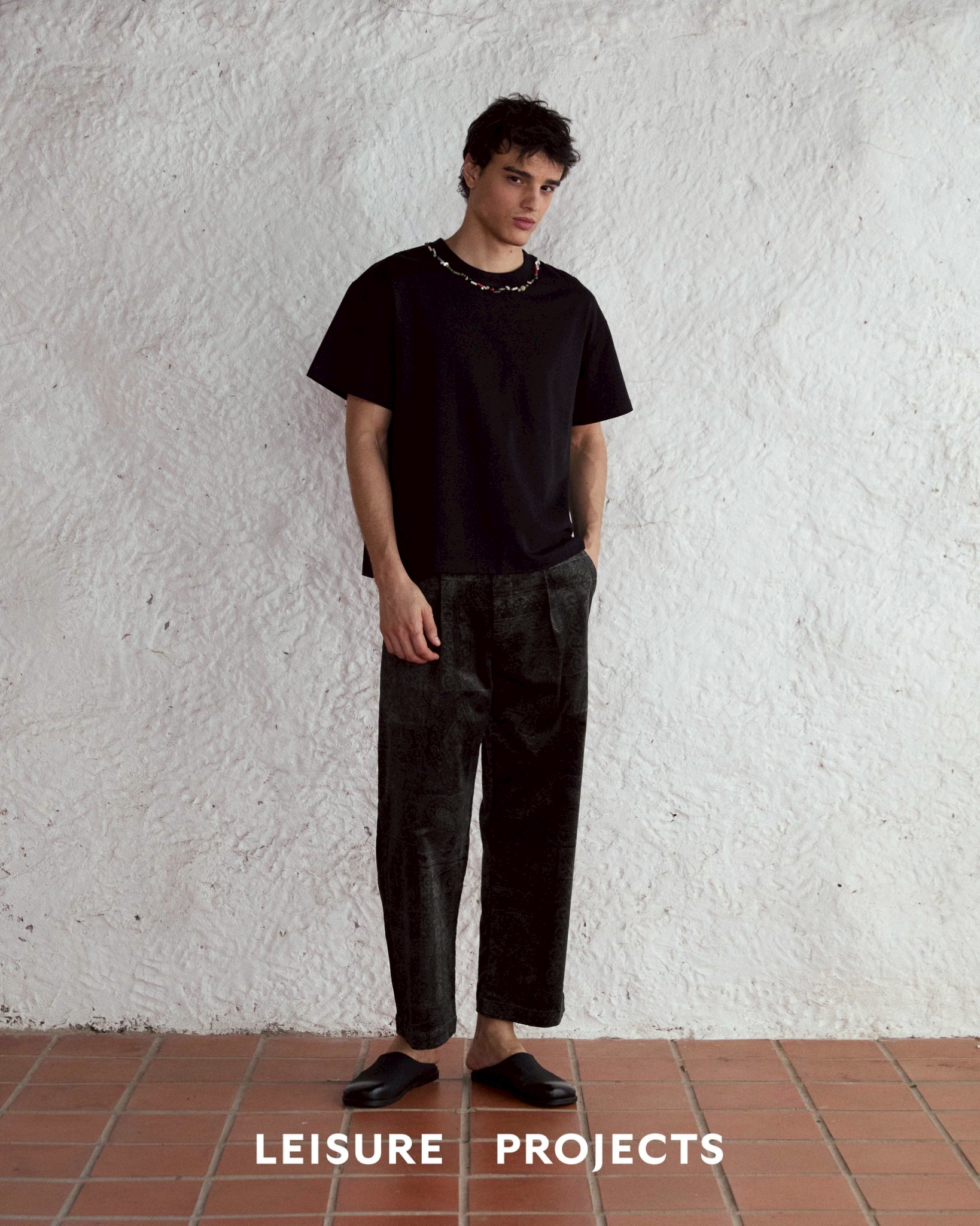 boxy fit heavy cotton t-shirt with stones and beads embelishment detail.