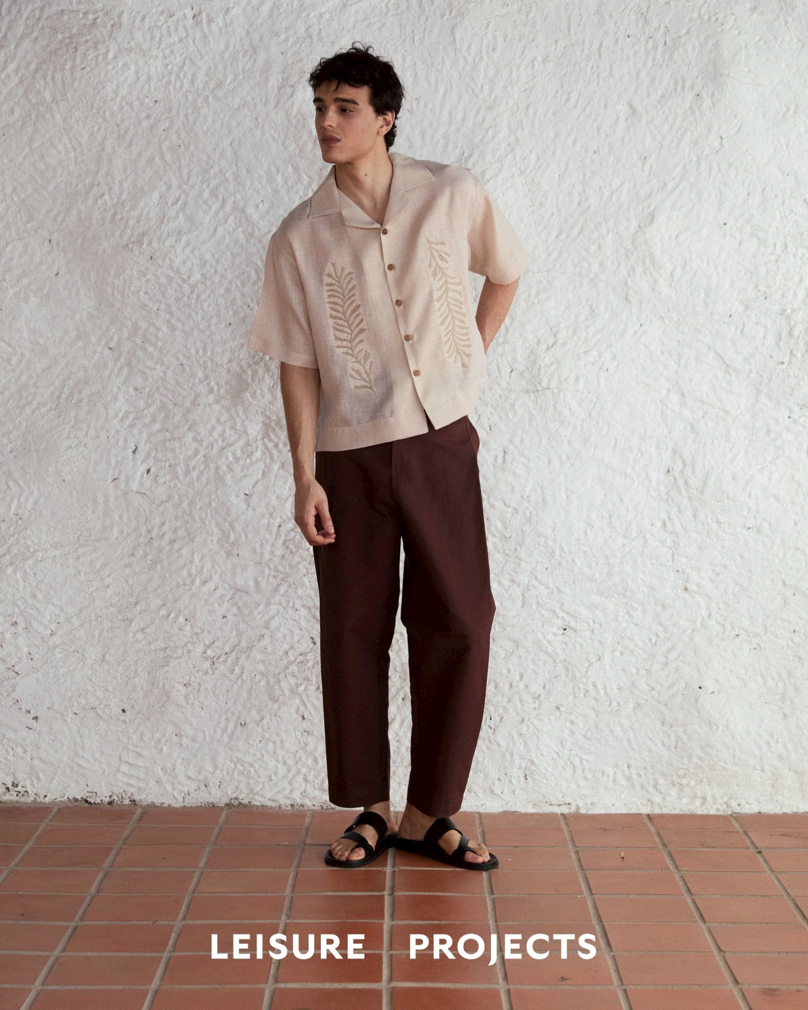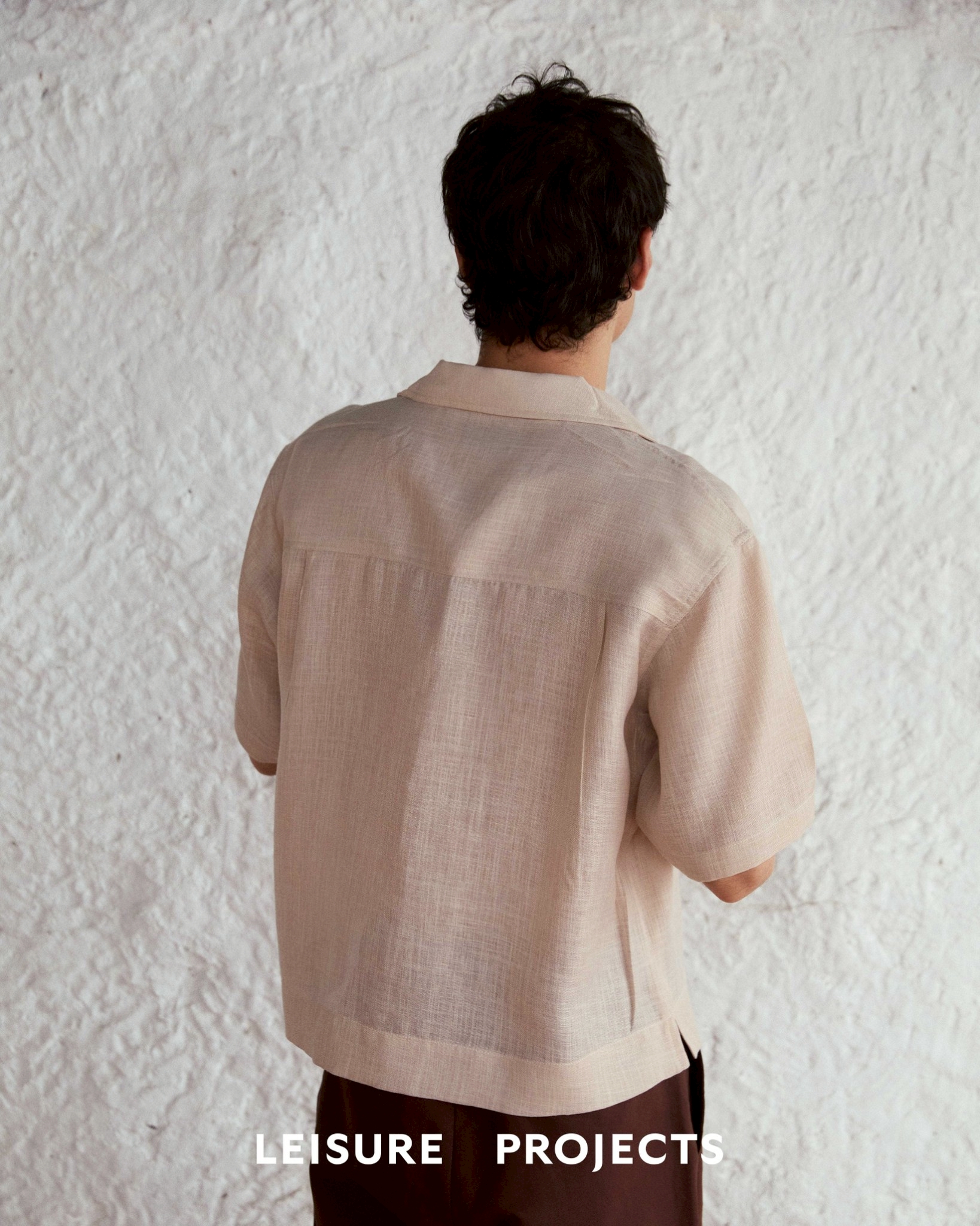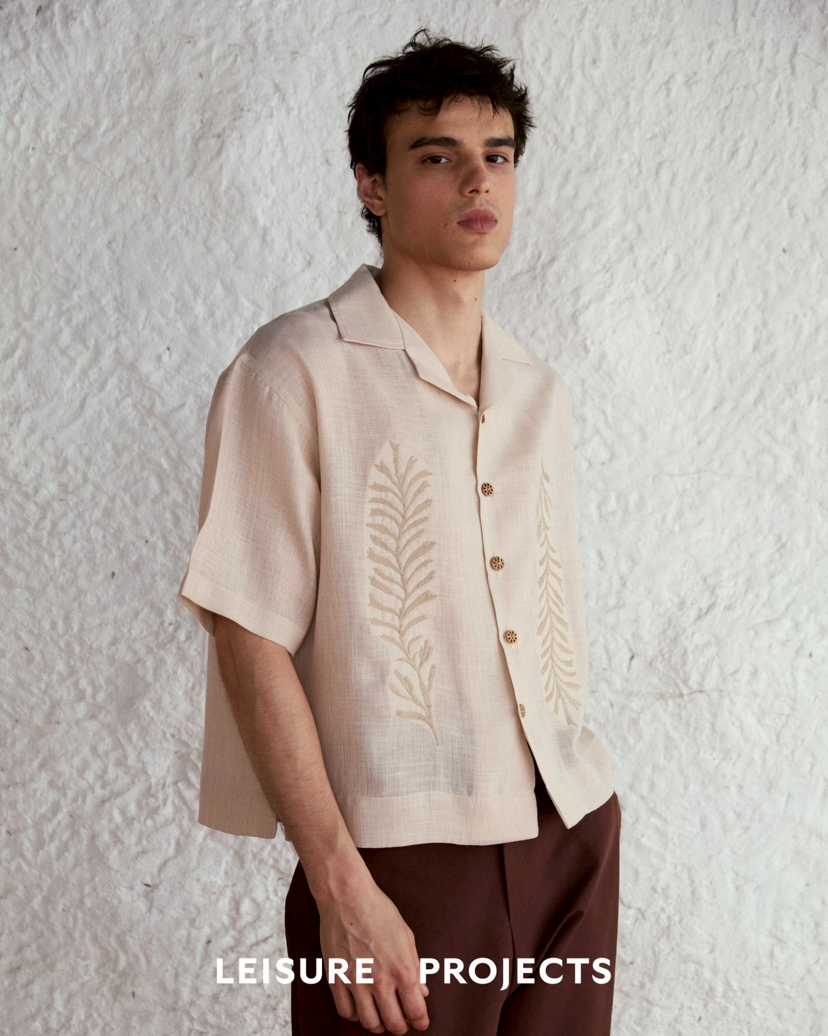 BOXY FIT LININ-COTTON HAWAIIAN SHIRT, WITH SEA GRASS EMBRODIERED DETAIL