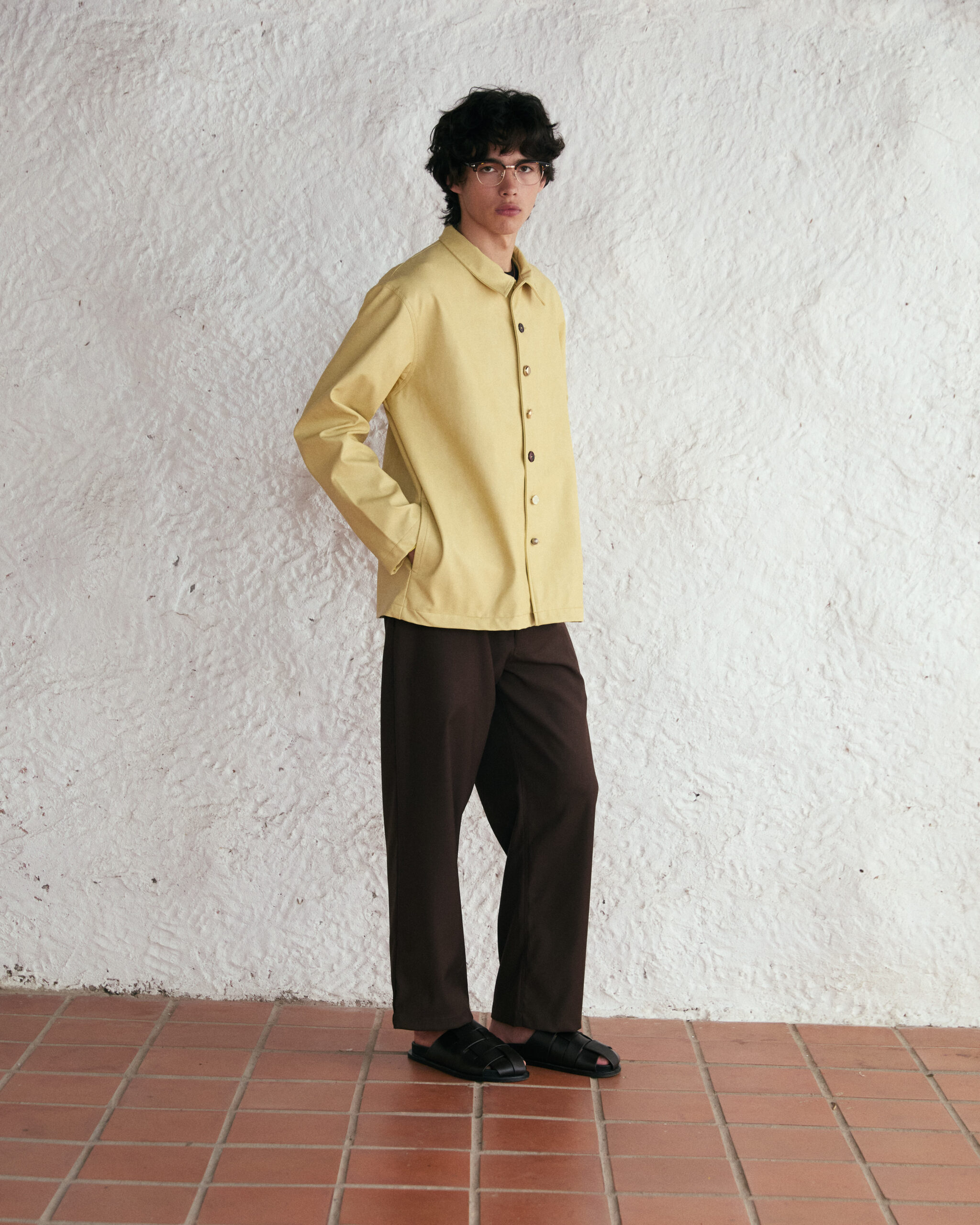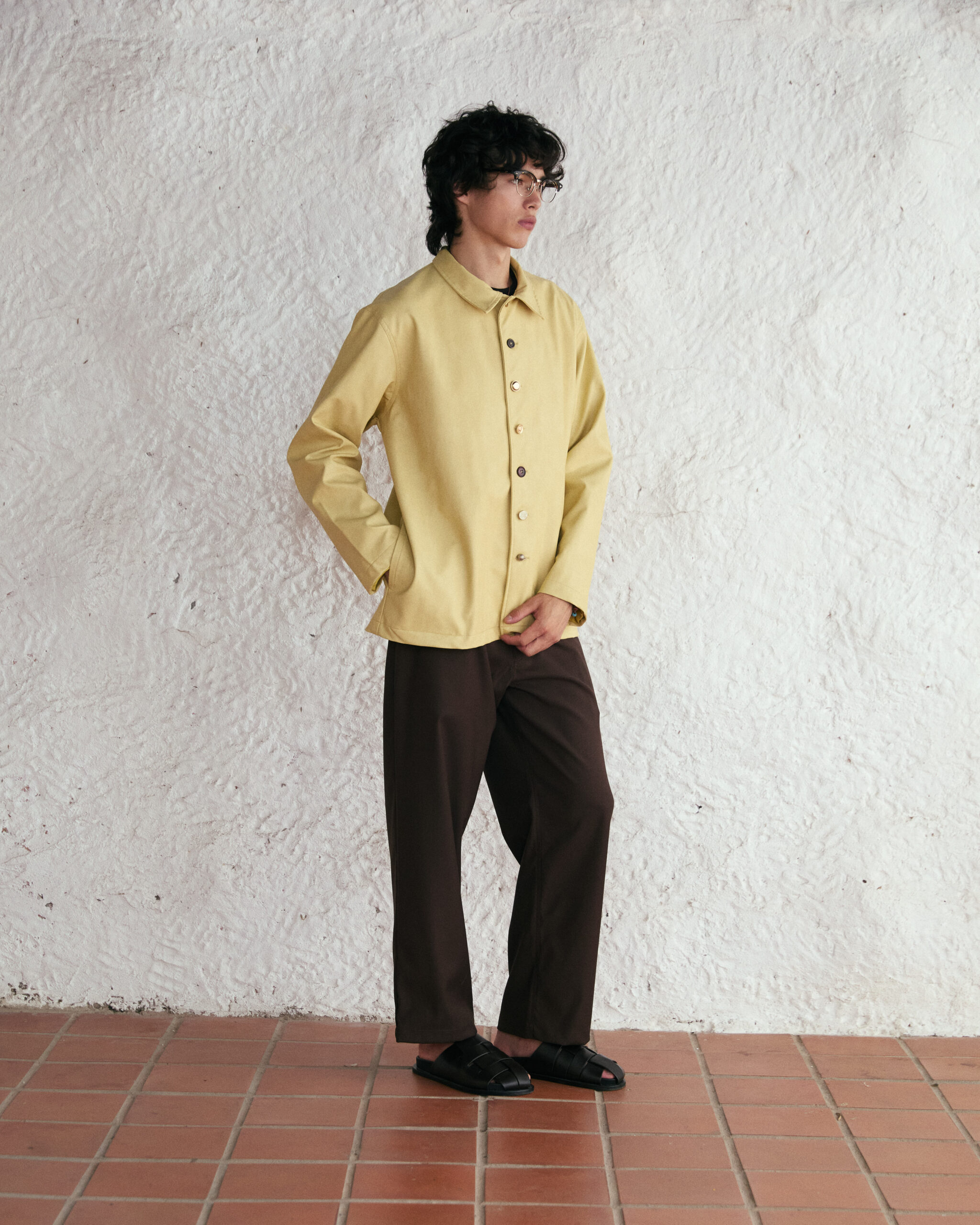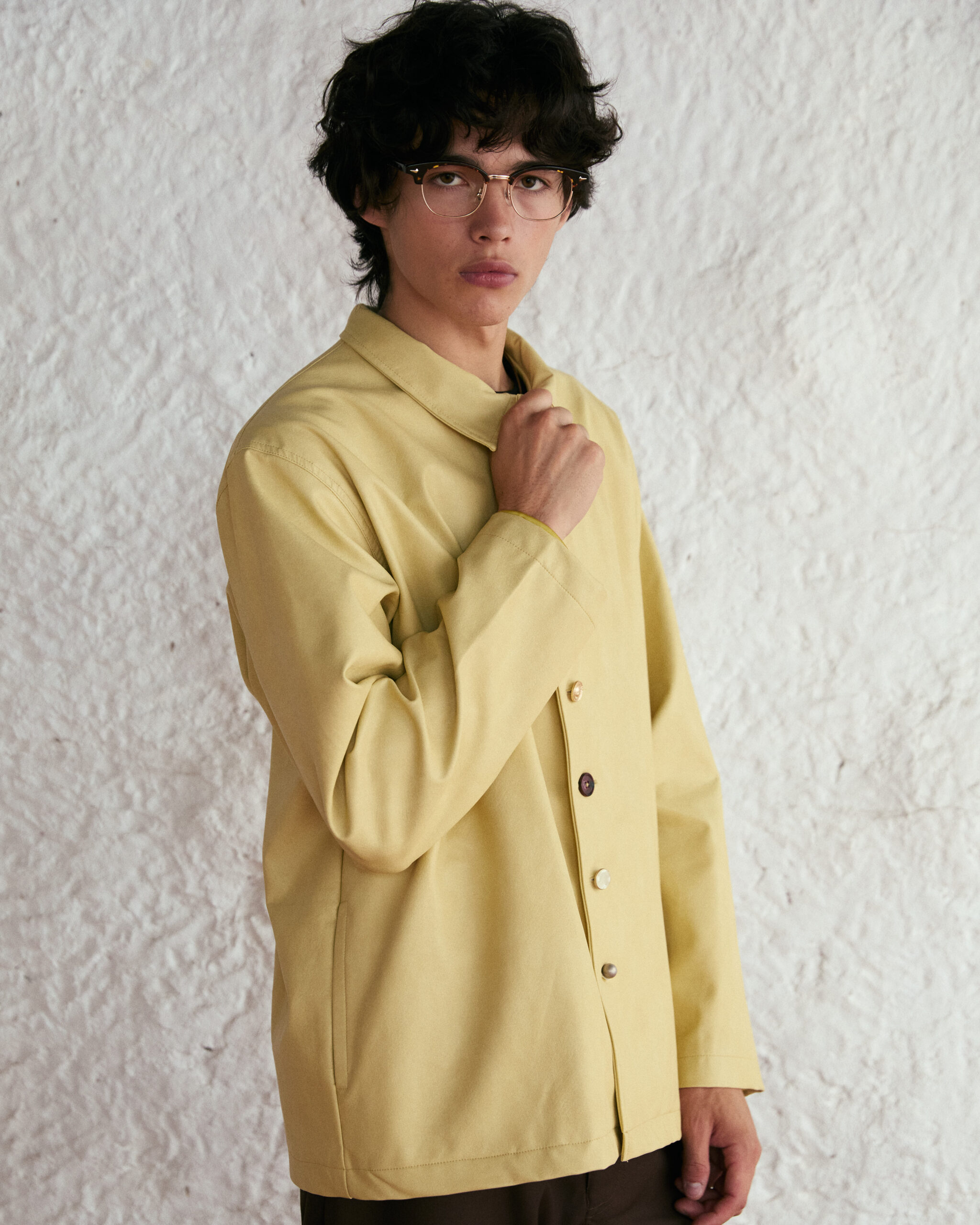 (LEISURE PROJECTS) BUTTONS LEATHER JACKET relax fit long sleeves shirt jacket with fancy buttons decorative details.
