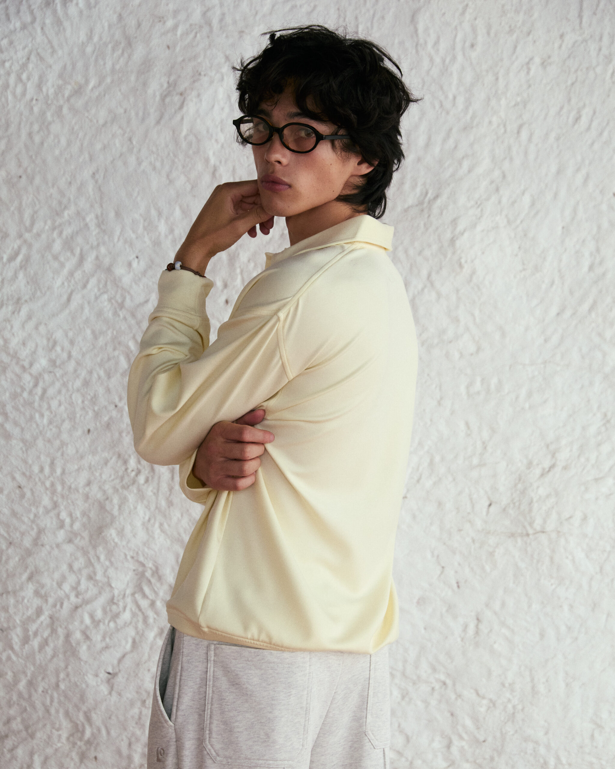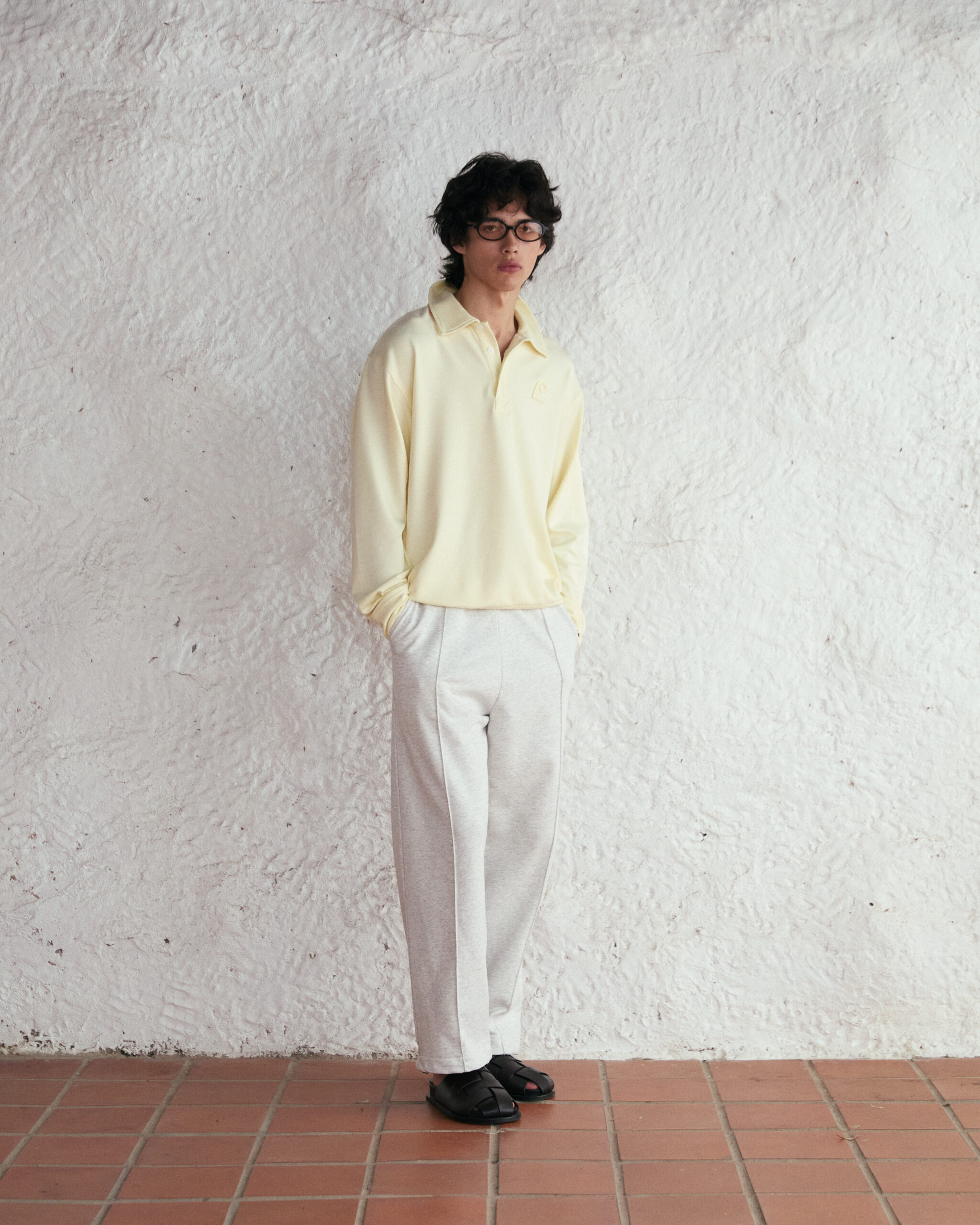 (LEISURE PROJECTS) LEISURE ICON POLO Body fit long sleeve polo shirt with LEISURE icon logo applique on the side cotton spandex fabric